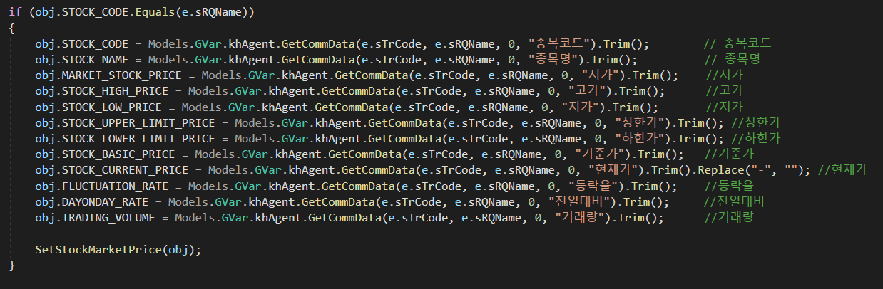 *나의 경우엔 sRQName에 종목코드를 적용했다. 이는 여러 데이터를 수신했을때 구분자로 활용할 생각이다.
