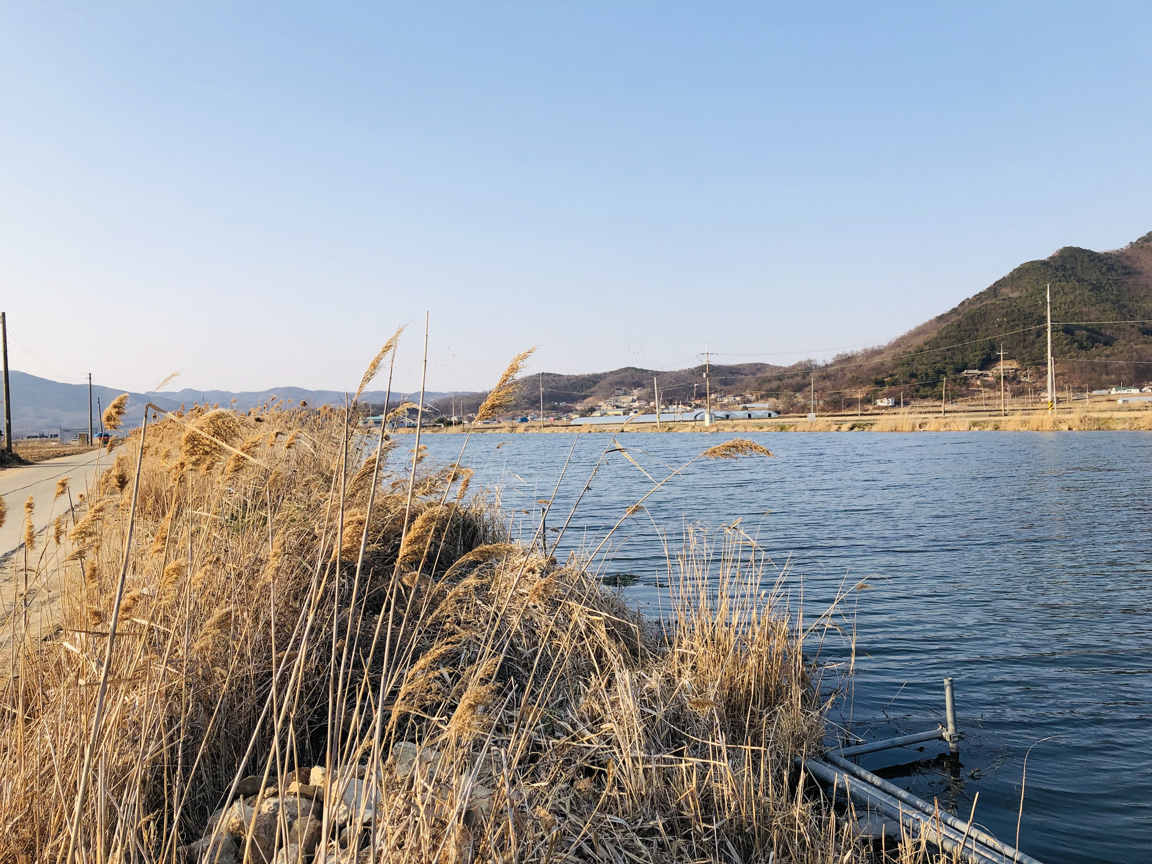 곧게 뻗은 농로길.. 해는 뉘엇뉘엇 저물고 주변에 오리들은 나때문에 놀라서 날아 다닌다.
