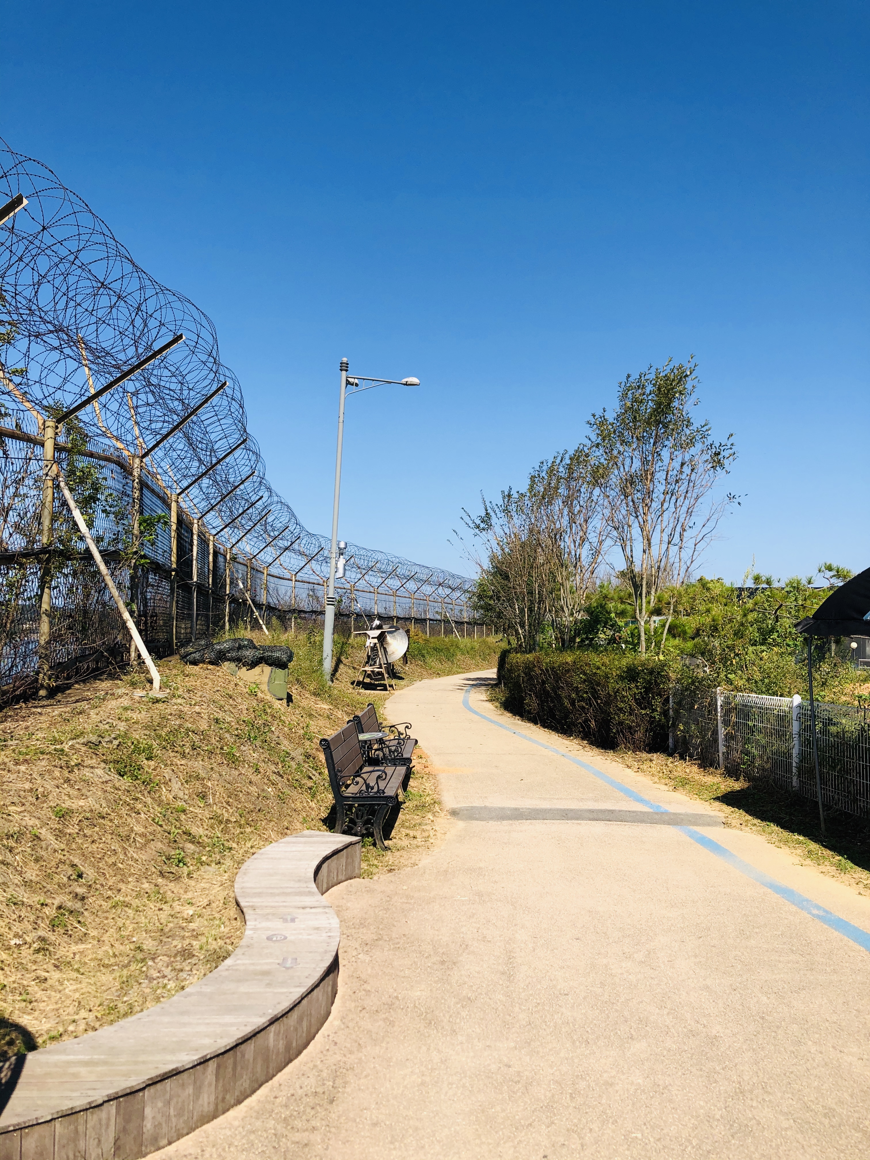 철조망을 보니 분단국가로써 휴일날 아침 긴장과 평화가 한몸에 느껴진다.