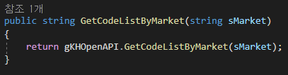 그리고 종목코드에 따른 종목명을 GetMasterCodeName 를 통해 조회할 수 있다.