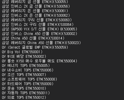 Application에서 조회, 원하는 종목의 코드를 가져와서 다른 원하는 작업을 수행할 수 있을듯 하다.