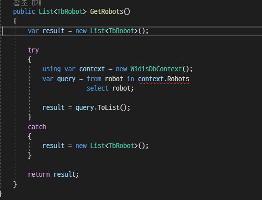 entity framework 기반으로 db의 특정 테이블을 조회하기 위해 아래 코드를 추가,