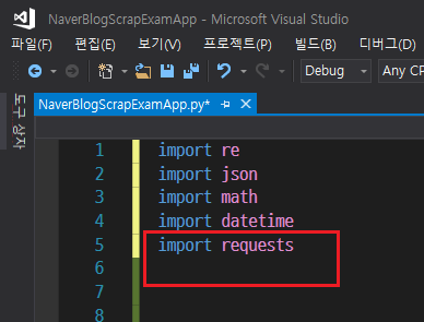 python에서 네이버 API를 이용하여 블로그 검색 예제를 작성하는 중 VisualStudio에서 아래 오류를 표시한다.