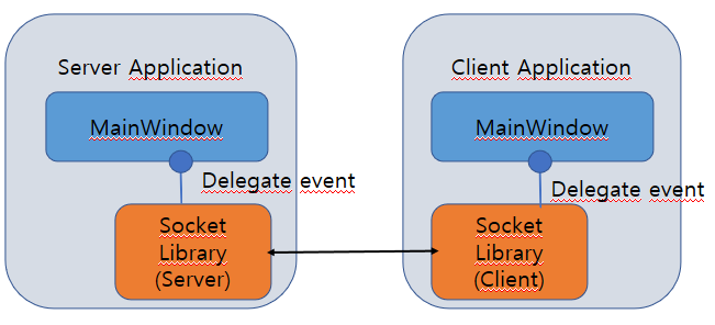 Socket Client/Server Module을 Class Library로 작성해 Recv된 데이터는 delegate를 이용해 받을 대상